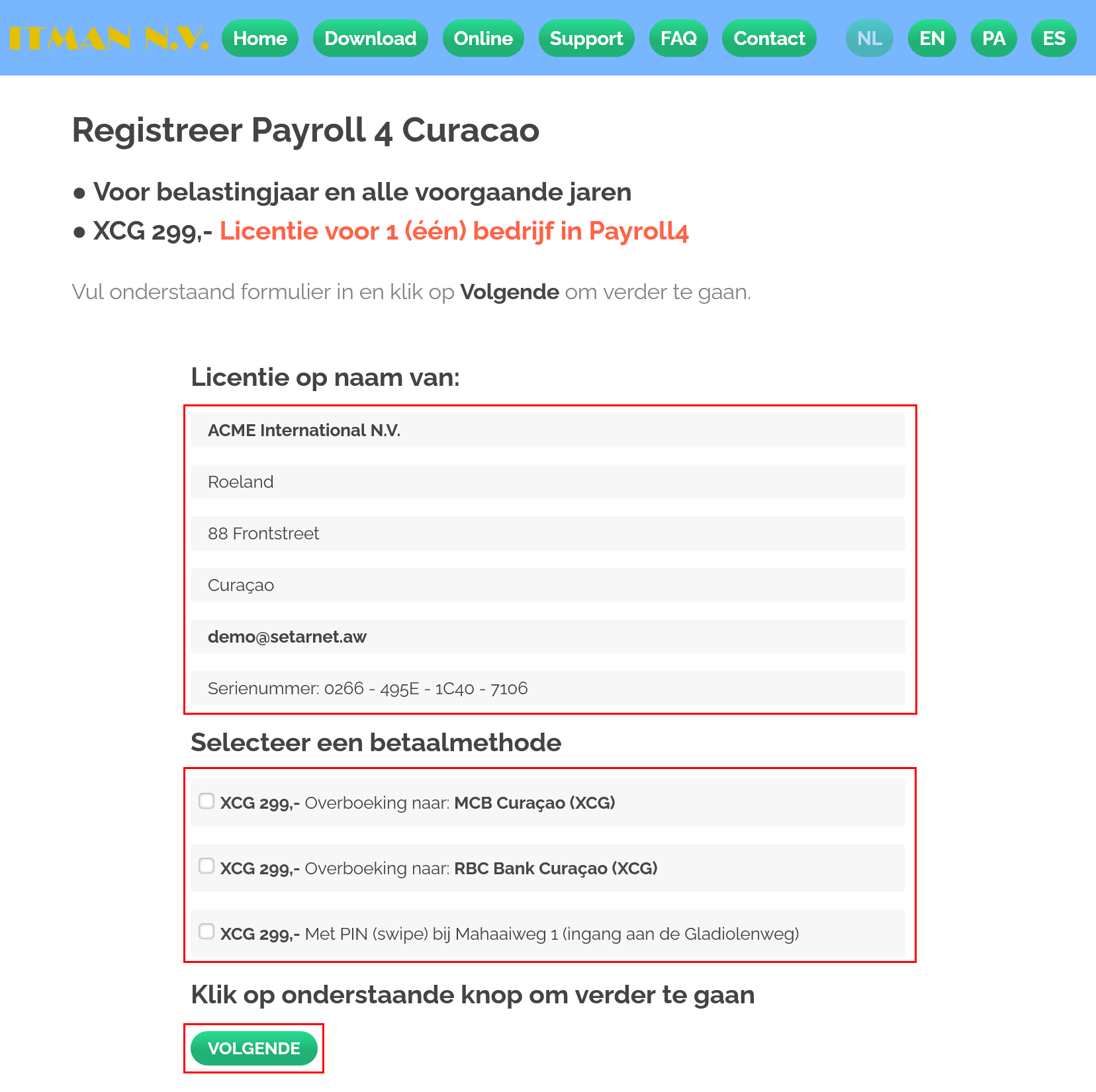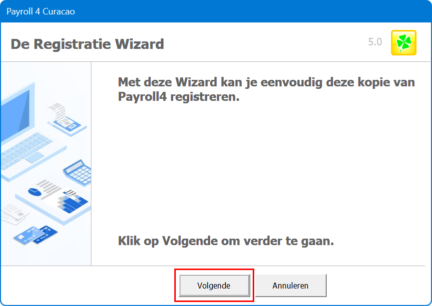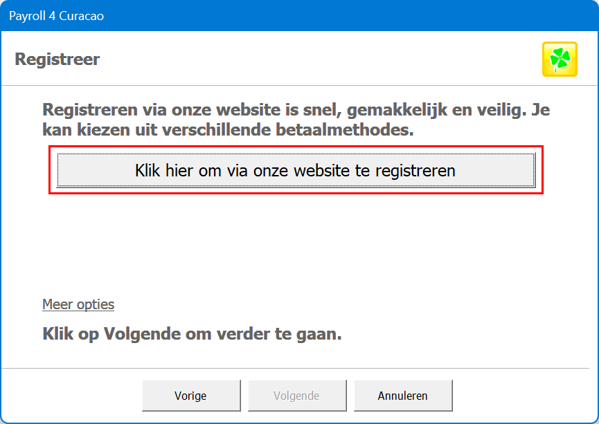 Om een Payroll4 licentie te kopen moet je je kopie van het programma registreren: