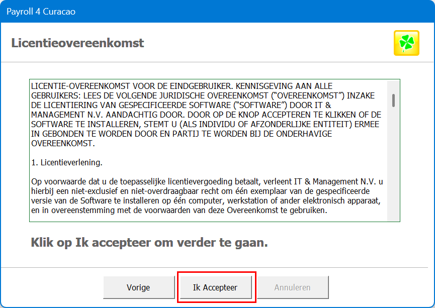 3. Als je de Licentieovereenkomst krijgt, klik dan op "Ik Accepteer".