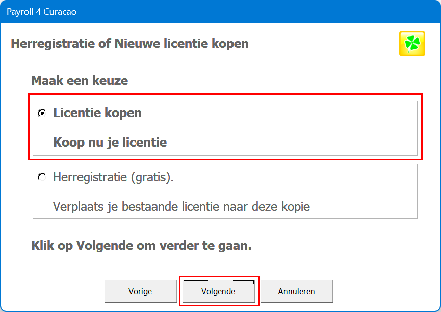 4. Selecteer de optie "Licentie kopen" en klik op "Volgende".