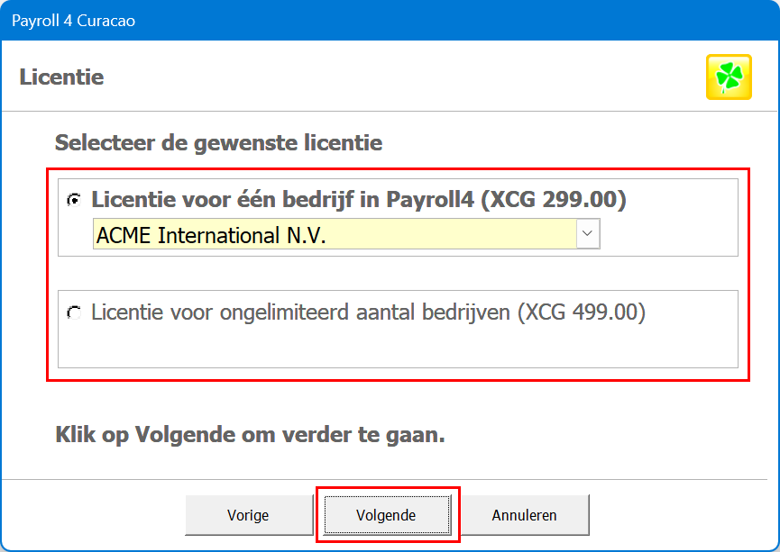5. Selecteer de gewenste licentie en klik op "Volgende".