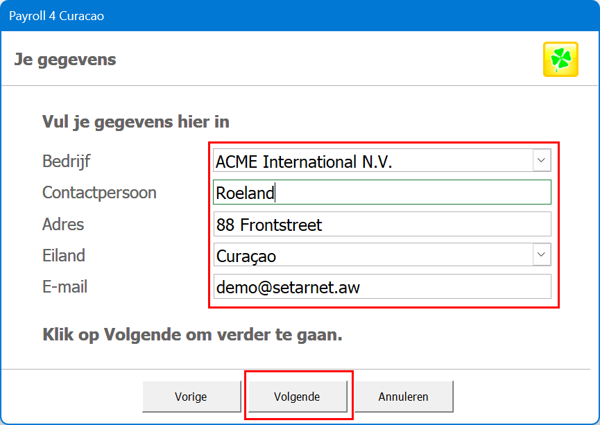 7. Vul je gegevens in en klik op "Volgende".