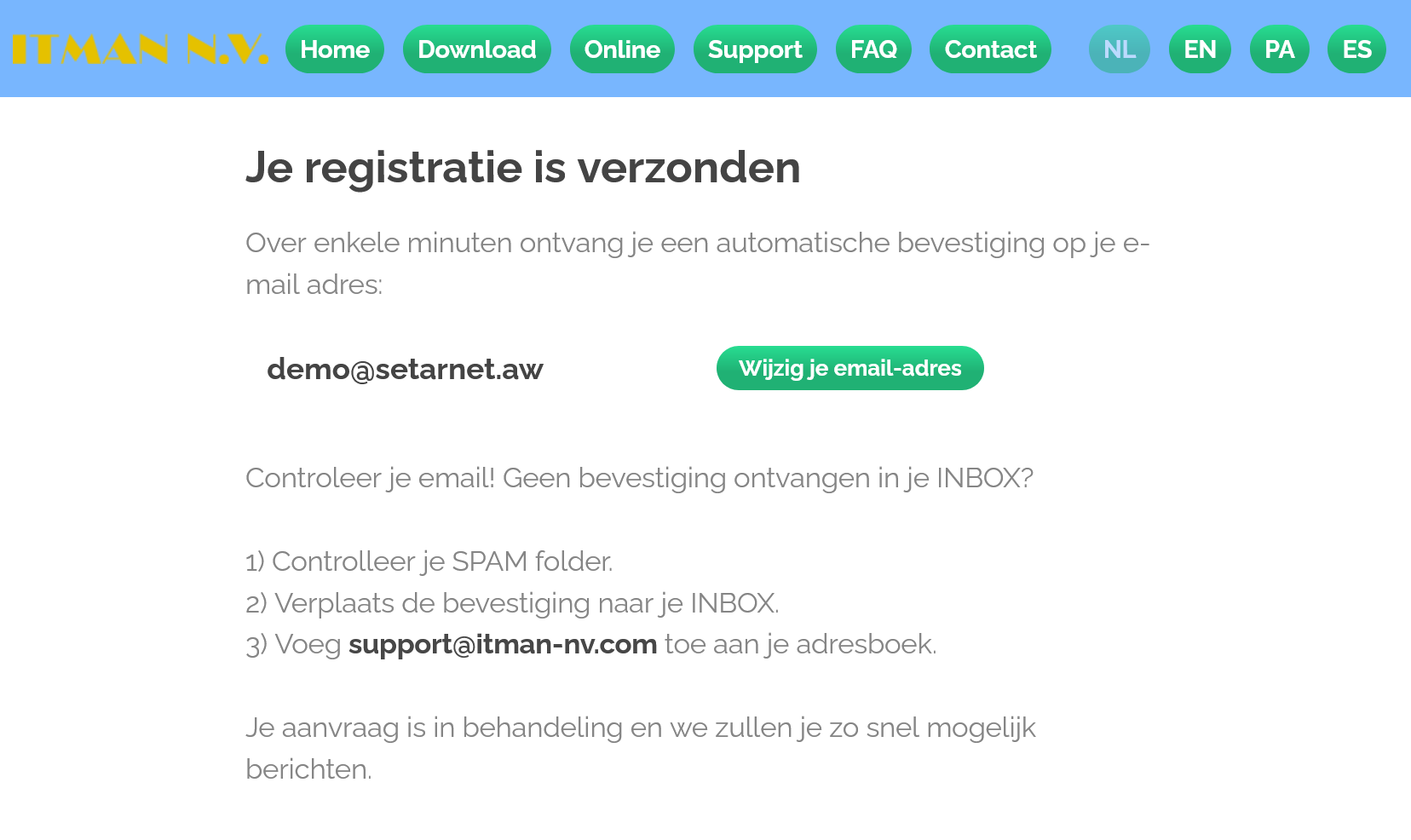 10. Controleer nu je e-mail voor een bevestiging met proforma invoice en betaalinformatie.